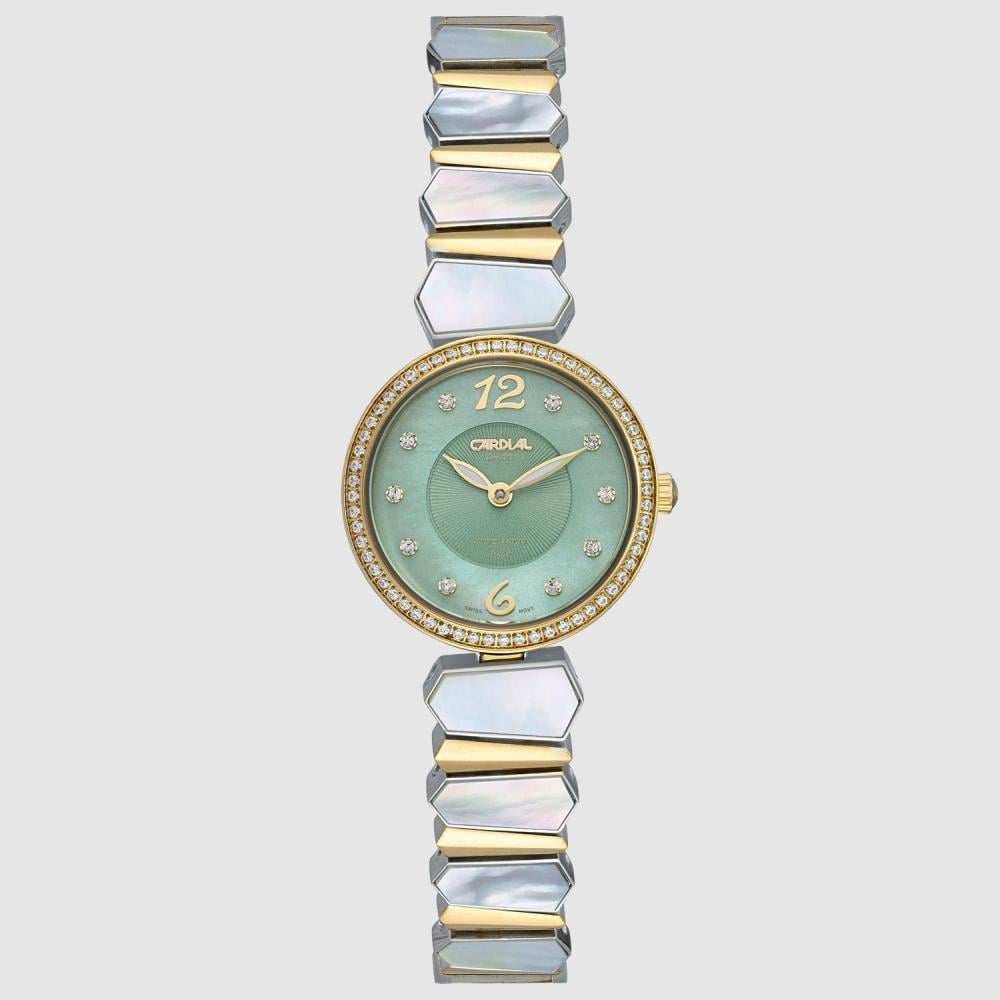 ساعة نسائية كارديال 244003 ذهبي مينا أخضر
