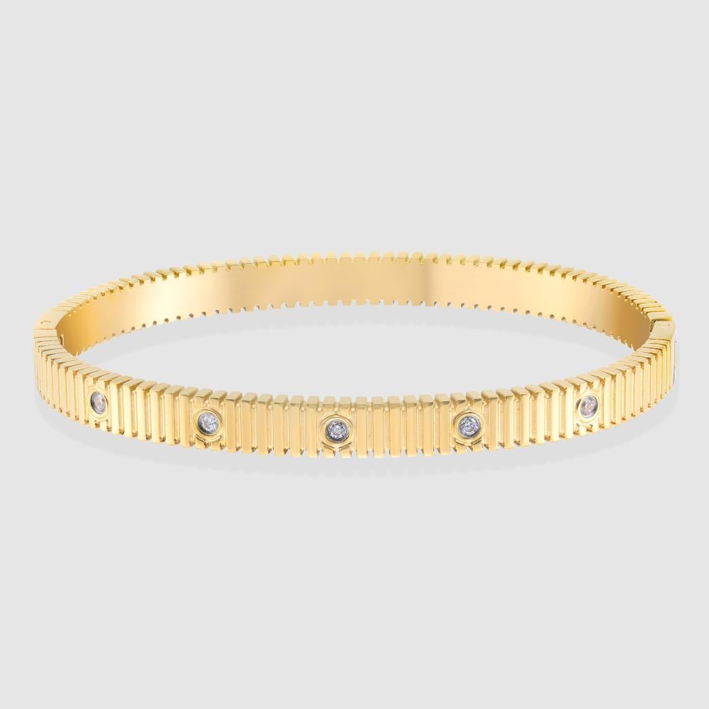 • تتمتع الأسورة بمظهرها المضلع الفريد من نوعه، والمرصع بأحجار الألماس اللامعة، مما يجعلها الخيار الأول لكل من يرغب في إطلالة مميزة وجذابة في المناسبات.