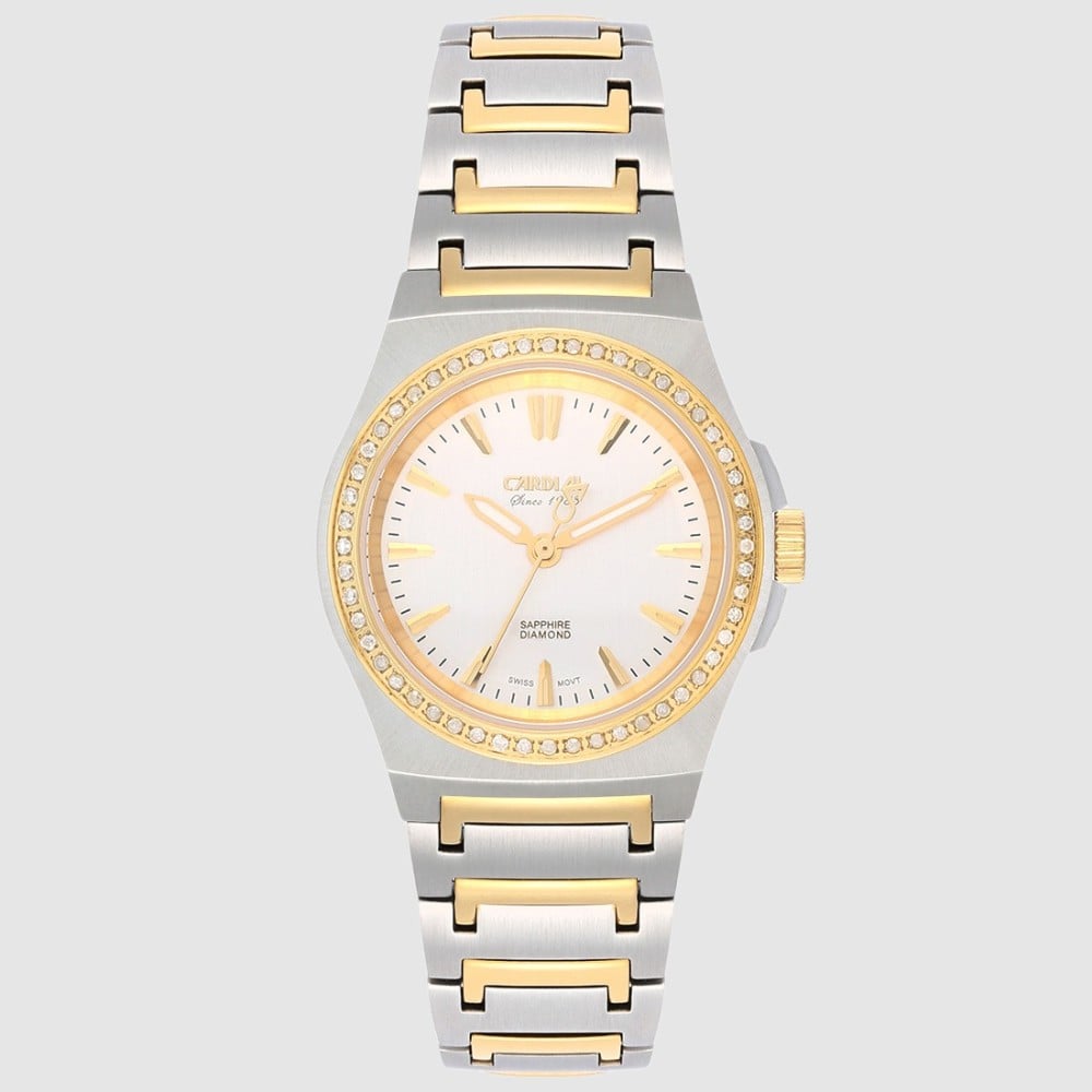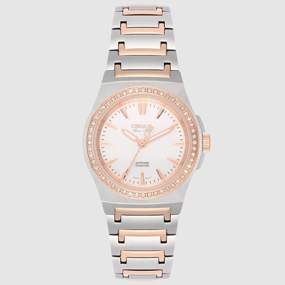 تمتعي بإطلالة ساحرة ومميزة مع ساعة نسائية ألماس كارديال الرائعة. تتميز هذه الساعة بالفخامة والتألق بفضل تصميمها الراقي المرصع بالألماس البرّاق الذي يضفي على المعصم لمعانًا ساحرًا.