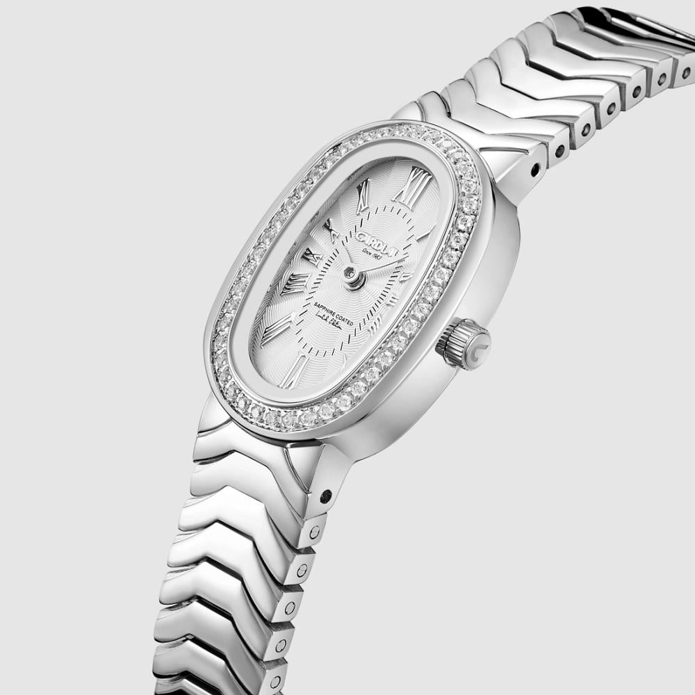 ساعة يد أنيقة من كارديال تمنحك التميز في كل لحظة، بتصميم فاخر مرصع بأحجار كريستال اللامعة، تأتي بإطار بحجم 20.3 مم وسوار أنيق بعرض 12 مم يناسب مختلف الإطلالات.