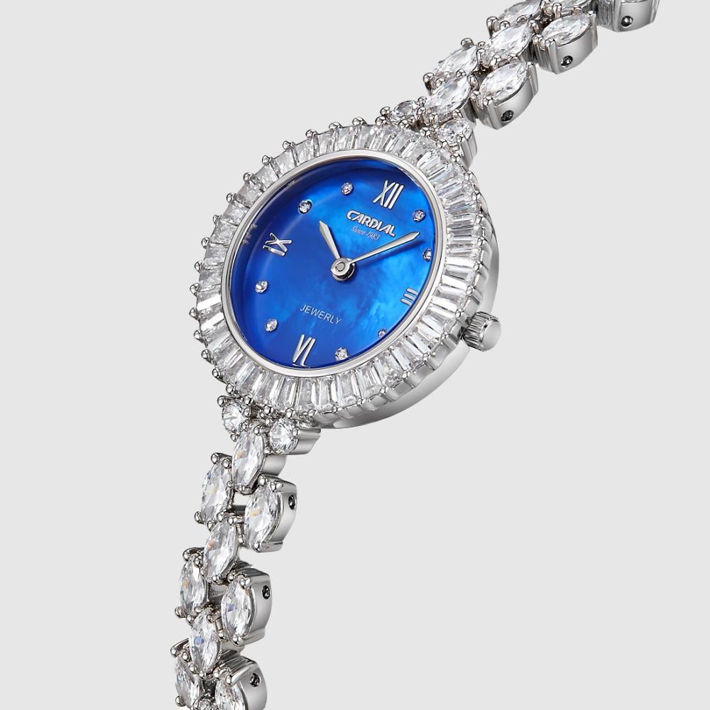 - لدينا في متجر كارديال تشكيلة من الساعات الفضية الكريستال التي تتميز بشكل رائع ومميز كأنها قطعة فريدة لن تجدها في معصم أي شخص آخر.