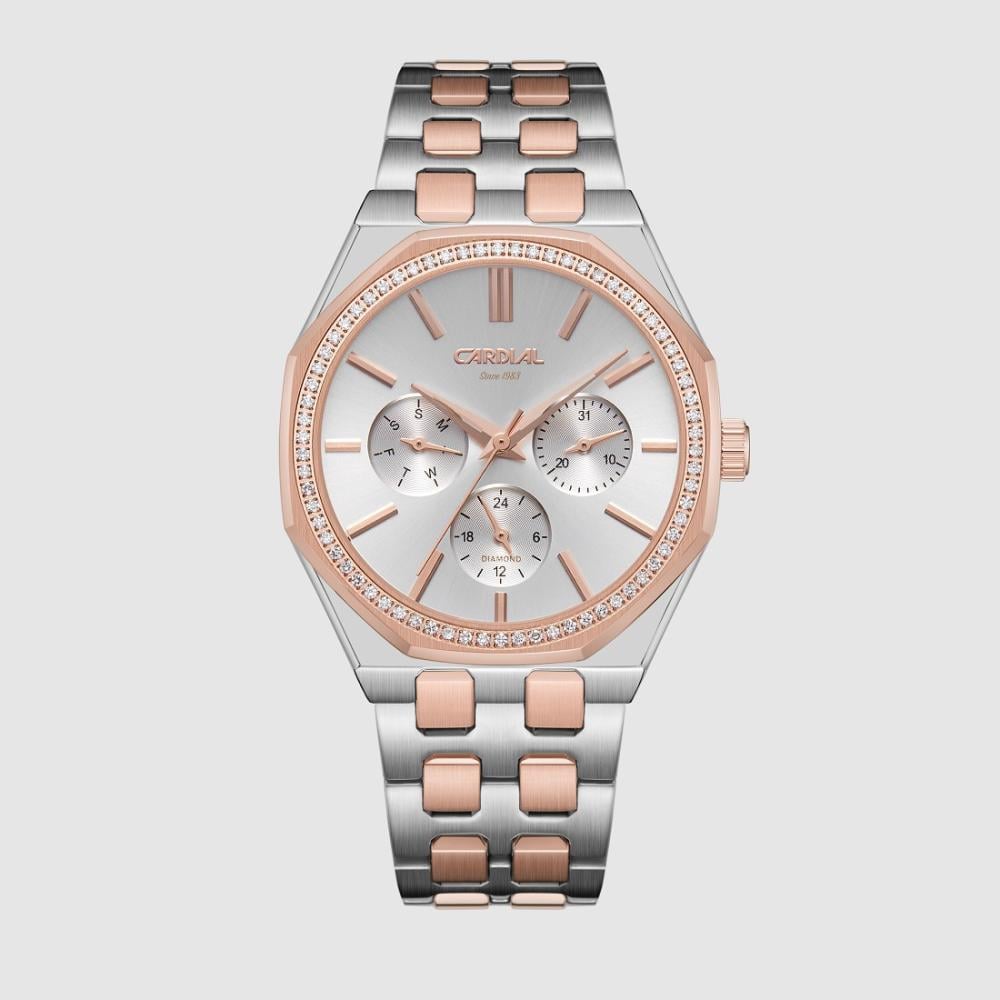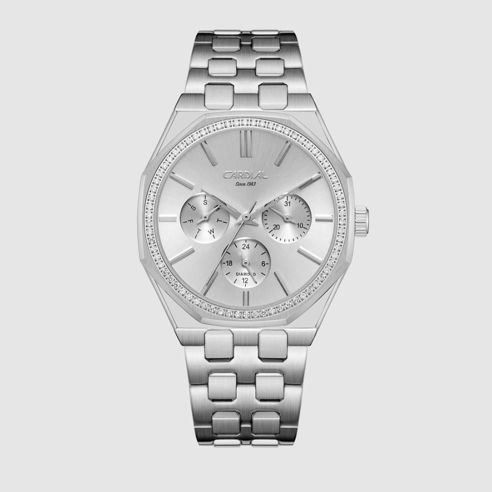 تعد ساعة رجالية ألماس كارديال من أفضل الخيارات الراقية والفاخرة للرجل العصري الذي يهتم بالأناقة والجودة.تتميز هذه الساعة بتصميم مميز وأنيق، وتتميز بوجود الماسات متلألئة حول الهيكل والإطار.