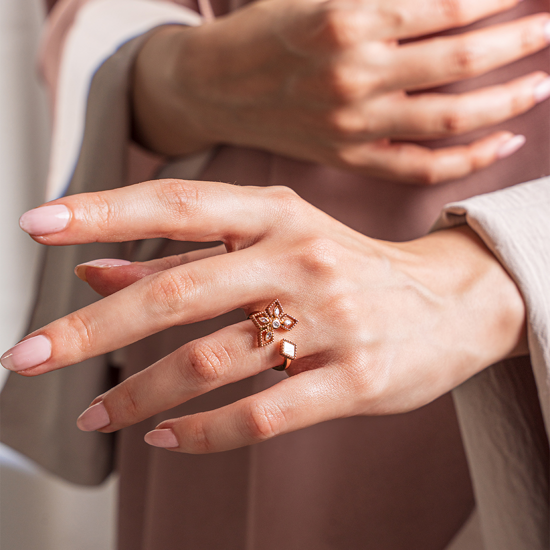 اكتشفي الاناقة الراقية مع خاتم دبله نسائي، فهو يجمع بين الفخامة والأناقة بتصميمه الراقي البسيط، يتميز هذا الخاتم بلمسة نهائية مرصعة بالفصوص البراقة التي تضيف إلى إطلالتك لمسة من الأناقة الخالدة، احصلي عليه من متجر كارديال وأضيفي إلى مجموعة مجوهراتك لمسة أنيقة ومميزة.