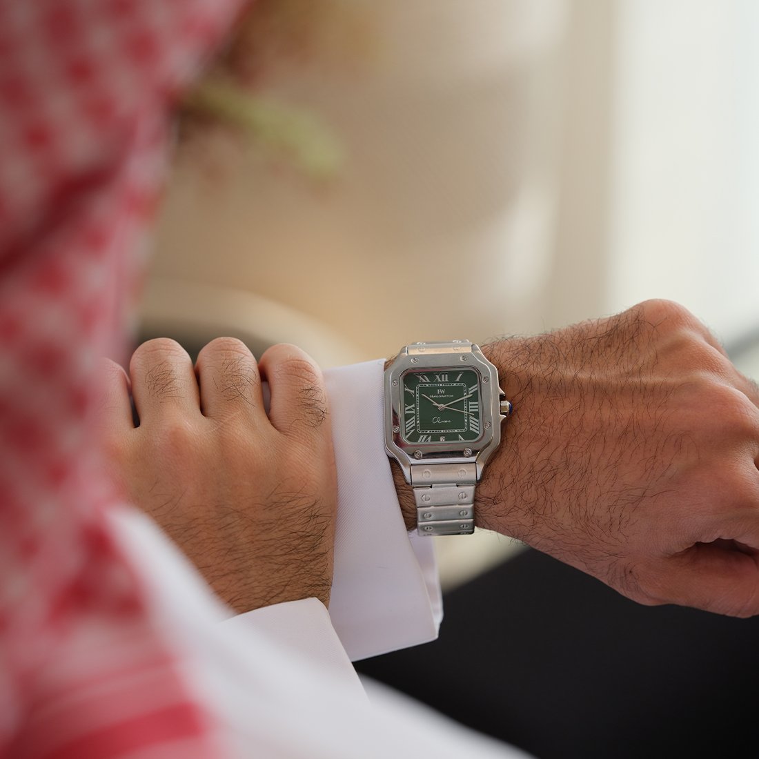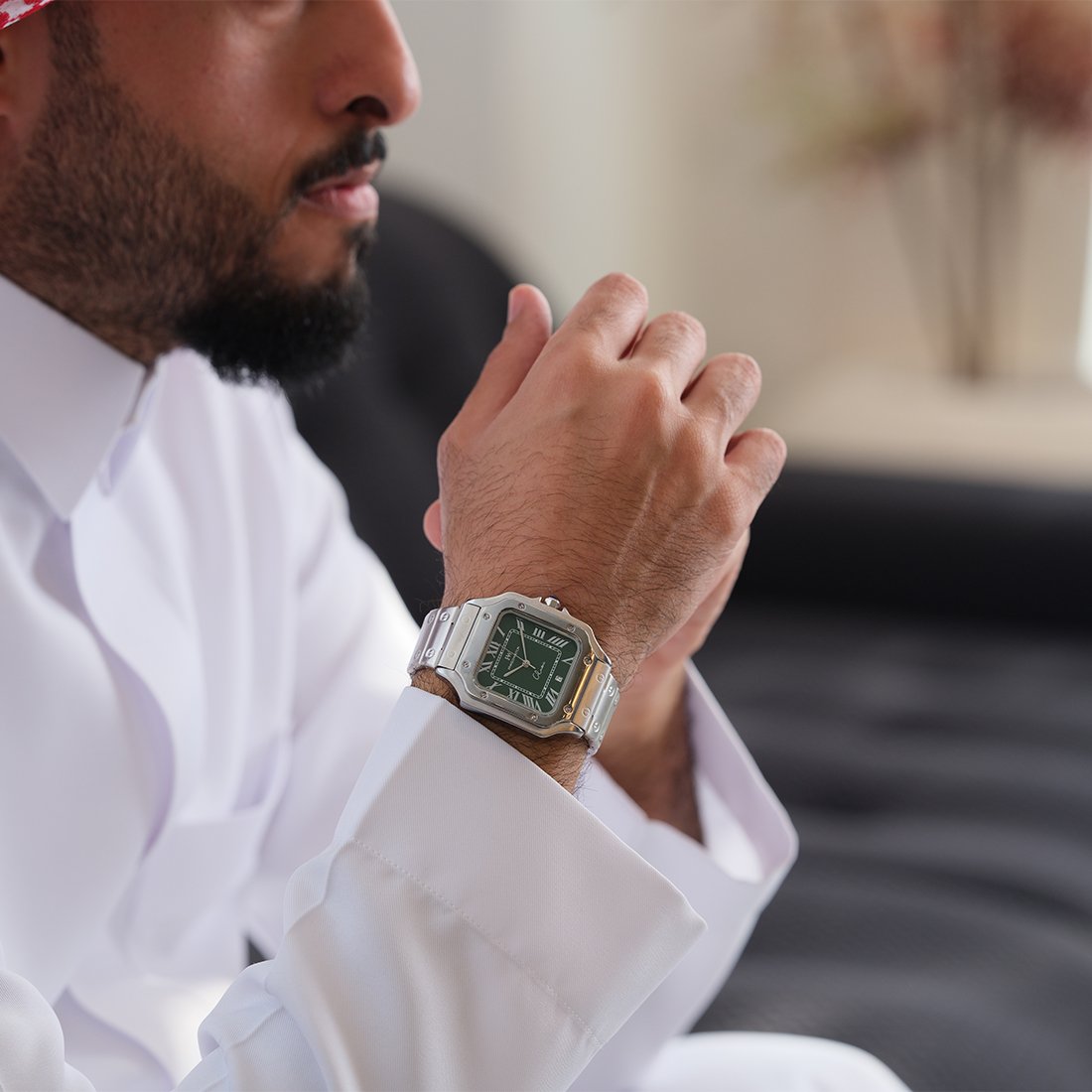 تجمع هذه الساعة بين الدقة العالية والعملية مما يجعلها خيارا مثاليا للرجل العصري الذي يقدر التفاصيل الراقية ويبحث عن لمسة من الفخامة في مظهره اليومي.