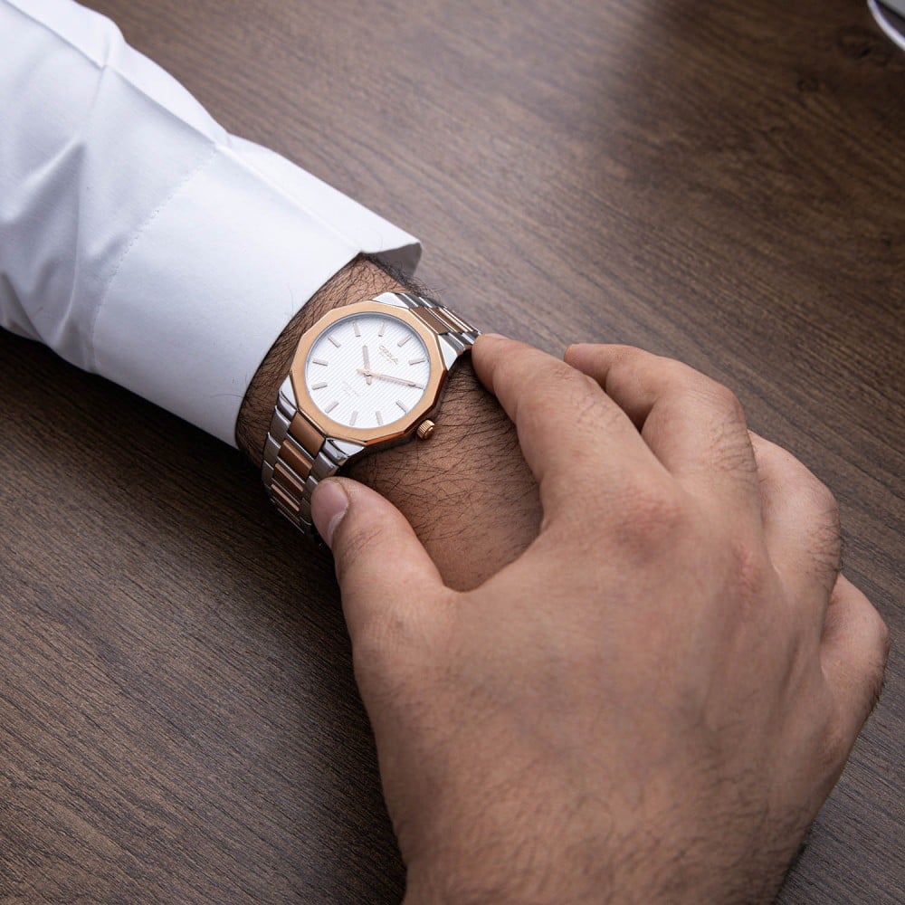إن ساعة رجالية كارديال ليست مجرد ساعة فحسب؛ إنه بيان القوة والثقة. تم تصميمه بدقة واهتمام بالتفاصيل، وهو الأكسسوار المثالي للرجل العصرى ، ارتديها في مناسبة رسمية، أو اجتماع عمل، أو ليلة في المدينة، ودع Cardial يزيد من هالة النجاح لديك.
